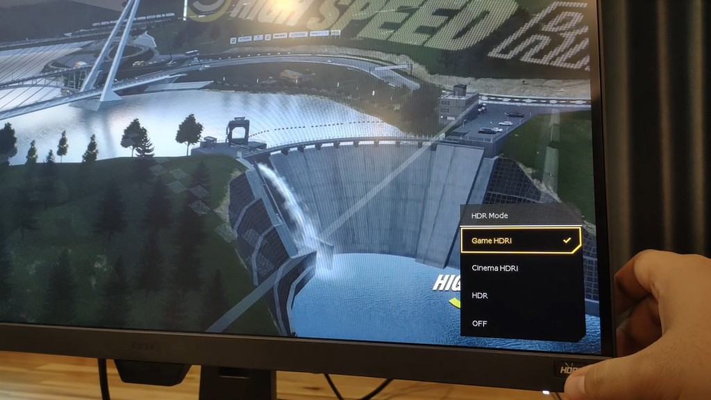 หรือสามารถเปิดคีย์ลัดโหมด HDRi ได้ที่มุมขวาล่างของจอ ซึ่งเราจะได้อัตรารีเฟรชสูงสุด และค่าสี HDRi ที่คมเข้ม พื้นที่มืดและสว่างสุด ก็จะมีความลึกและความรู้สึกของรายละเอียดมากขึ้น แต่ก็ต้องแลกกับค่าความสว่าง ตามชื่อ “HDR” หรือ High Dynamic Range ที่ต้องขับแสงออกมาเพื่อเผยรายละเอียดของสิ่งที่กำลังแสดงผลบนจอนั่นเอง
