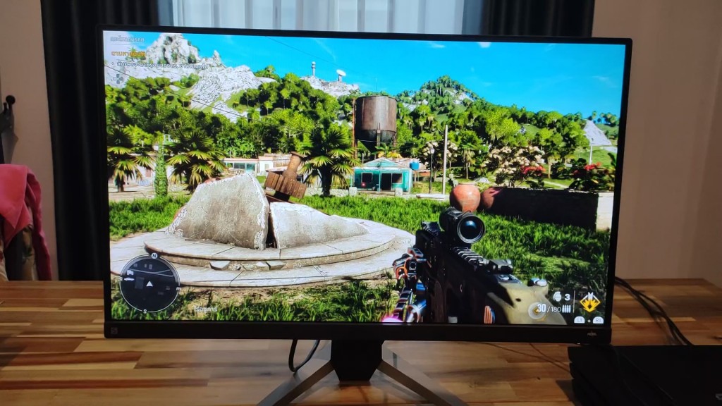 ในขณะเดียวกัน ถ้าคุณเล่นเกมบน PC อัตรารีเฟรชเรทจะพุ่งไปถึง 165hrz (เมื่อคุณต่อสาย DP นะ) ซึ่งความลื่นไหล ผิดกันอย่างมากกับคอนโซล (แน่นอนล่ะ) แม้ว่าจอภาพจะไม่ได้รับการรับรองอย่างเป็นทางการว่ารองรับ G-SYNC แต่ FreeSync Premium จะทำงานโดยไม่มีปัญหากับการ์ดค่าย NVIDIA ตราบใดที่คุณใช้สล็อต DisplayPort