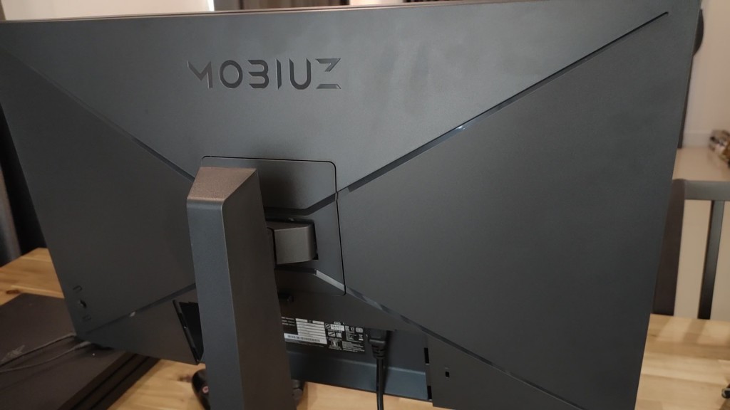 ที่ด้านหลังนี้จะมีพอร์ทไม่มากนัก เมื่อเทียบกับตัวใหญ่อย่าง BenQ Mobiuz EX3415R แต่ก็เพียงพอต่อการใช้งานในพื้นที่จำกัดแล้ว ด้วย HDMI 2 ช่อง และ DisplayPort 1 ช่อง พร้อมช่องปลั๊กไฟ ข้อดีของ EX2710S คือไม่ต้องใช้หม้อแปลงเหมือน ตัว 34 นิ้วที่ทางเราเคยรีวิวไปแล้วนั่นเอง ทำให้ไม่ต้องใช้พื้นที่ในการเซตติ้งอะไรมากนัก