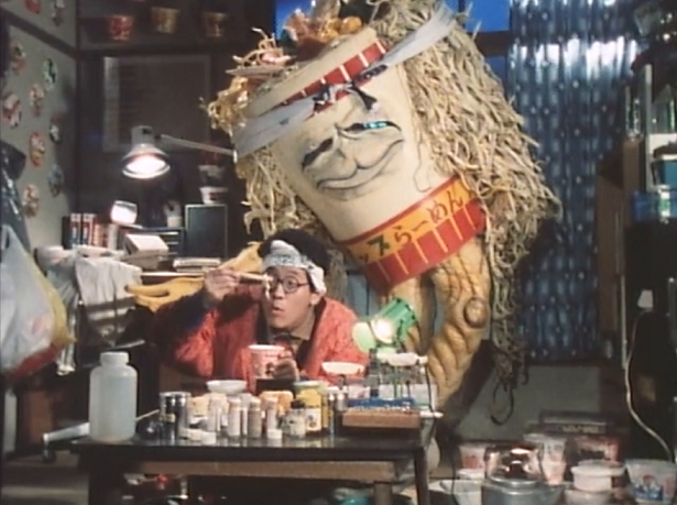 ในตอนนี้จะเกี้ยวข้องกับ อาโกะ หรือ บลูสวอโลว์ สมาชิกน้องเล็กสุดของทีม ที่มีคนแอบปลื้มอย่าง รุ่นพี่เท็ตสึตะ หนุ่มเนิร์ดผู้คลั่งไคล้บะหมี่ถ้วยเป็นชีวิตจิตใจ จนไปเข้าตาปีศาจบะหมี่ถ้วย จึงหลอกใช้ความชื่นชอบเพื่อสร้างสุดยอดบะหมี่ถ้วยที่รสชาติติดใจ แต่ความจริงแล้วปีศาจตนนี้ได้ร่ายมนต์ที่ใครได้ทานแล้วจะใจร้อนแบบดุดันไม่เกรงใจใคร สิ่งที่ทำให้ตอนนี้เป็นที่จดจำนั่นคือเพลงโฆษณาบะหมี่ถ้วยอะโกะจัง หรือ Youki na Ako-chan กลายเป็นเพลงติดหูของแฟนหนังขบวนการชุดนี้ ซึ่งคนที่ร้องเพลงนี้ไม่ใช่ใครอื่นนอกจาก คุณซายูริ อุชิดะ และ ริกะ คิชิดะ สองสาวที่รับบทเป็น อาโกะและคาโอรินั่นเอง