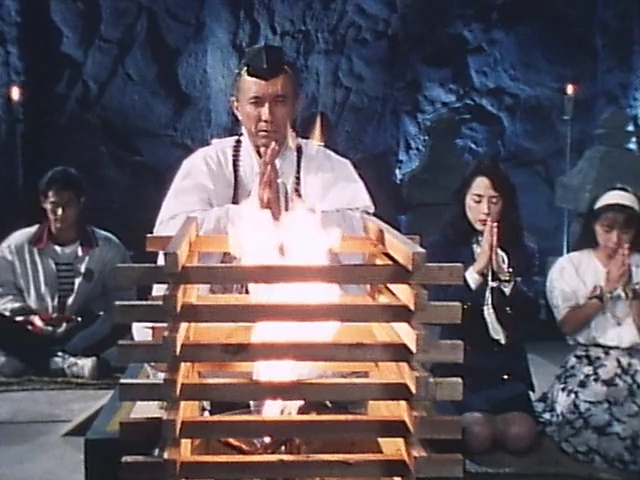 ถือได้ว่าเป็นตอนที่มีความแฟนตาซี เมื่อ เทนโด ริว หรือ เรด ฮอวก์ ต้องไปช่วยสมาชิกร่วมทีมสามคนอย่าง ไก, อาโกะ และ ไรตะ ที่ถูกดูดไปยังโลกของปีศาจของเหล่าไวรั่ม งานนี้เขาจึงต้องพึ่งไสยศาสตร์โดยได้รับความช่วยเหลือจากนักบวชท่านหนึ่งทำการส่งวิญญาณริวไปช่วยเพื่อนๆออกมาจากโลกปีศาจให้ได้ เกร็ดน่าสนใจก็คือผู้ที่รับบทเป็นนักบวช คือคุณ มาชาชิ อิชิบาชิ นักแสดง เจ้าของบทวายร้ายที่น่าจดจำหลายเรื่อง อาทิ Battle Fever J, JAKQ และ Turboranger นั่นเอง