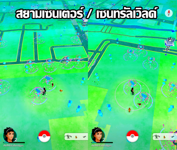 อันนี้จะคาบเกี่ยวกับพวกที่อยู่ในสยามสแควร์ เพราะนี่ก็เป็นจุดที่มีทั้งยิม และเสา Pokestop จำนวนมาก และบางจังหวะพวกก็กด Lure Module ตลอดทาง จนกลายเป็นทุ่งดอกซากุระกันเลย