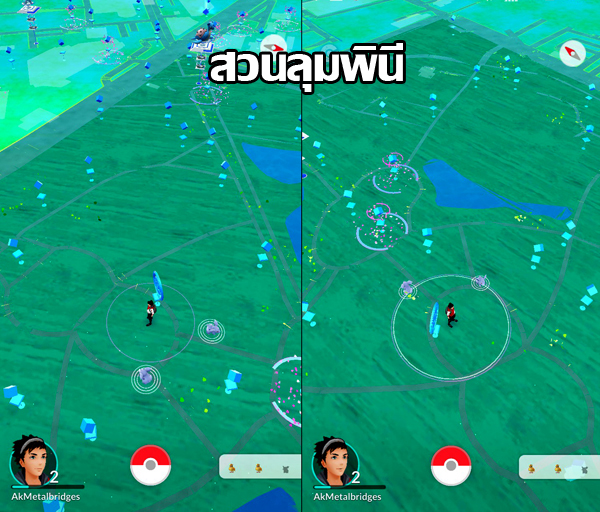 อันนี้ผู้เล่นฮาร์ดคอร์มักจะมากัน ด้วยจำนวนเสา Pokestop และยิมต่างๆ อยู่ไม่ไกลกันมากนึก บวกกับบรรยากาศอันร่มรื่น ก็ทำให้ผู้เล่นเข้ามาที่สวนลุมมากมายตั้งแต่เช้ายันค่ำกันเลย บางทีก็บการออกกำลังกายได้ด้วย!