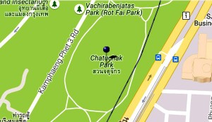 อันนี้ไม่ต้องแนะนำอะไรมาก เพราะเป็นแหล่งช๊อปปิ้ง และสวนสาธารณะอันดับต้นๆของกรุงเทพ ด้วยจำนวนเสา Pokestop ที่มีราวๆ 20 เสา (ในรัศมีของสวนนะ รวมตลาดด้วย) แถมใกล้สวนรถไฟ และรถไฟฟ้าใต้ดิน จึงทำให้ผู้คนมาที่นี่เป็นจำนวนมากในวันหยุด ดังนั้น ร้านค้าร้านไหนมีส่วนลด หรือโปรโมชั่นพิเศษแก่เหล่าผู้เล่นที่มาเยือน ก็น่าจะกระตุ้นยอดขายได้ดีไม่น้อยนะครับ 555+