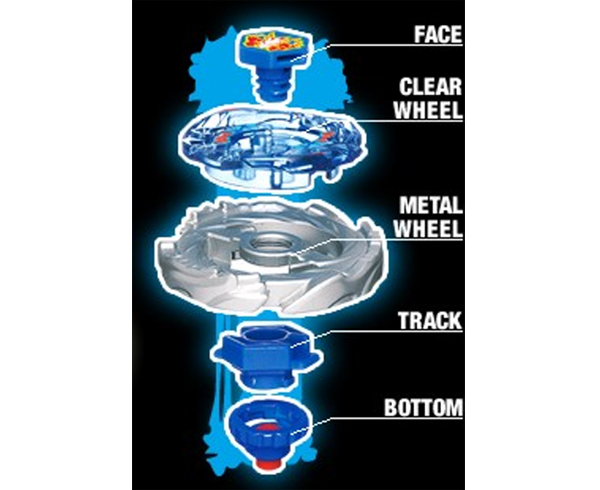 หลักๆยังมีส่วนประกอบคล้ายกับเบย์เบลดยุคแรก แต่ส่วนที่อัพเกรดที่สุดก็คือ สปินเกียร์ ที่ได้เปลี่ยนไปใช้ ระบบ Turbo Winder เพื่อช่วยในการขับเคลื่อนเกียร์ที่อยู่ด้านใน เมื่อหมุนไปได้ระยะหนึ่ง ตัวเกียร์จะทำการปลด “ระบบล็อคคลัทช์” ภายในตัวฐานเบลดเบส