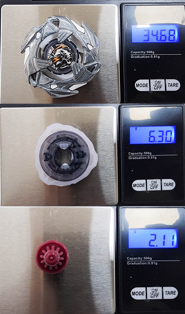 มีจุดปุ่มยื่นออกมา 3 จุด ที่ความสูง 6.0 มม. โดยจุดยื่นออกมา 3 จุดใหญ่ๆ จะมุ่งเน้นไปที่การเหวี่ยงน้ำหนักไปที่เบลดเหล็ก3จุดที่รุนแรง อีกทั้งมีจุดเด่นที่ความเตี้ย ด้วย จึงมีโอกาสในการ Burst ที่ต่ำมาก