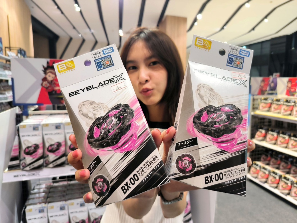 Beyond the matches, the event featured an extensive merchandise corner filled with exciting new releases. Highlights included the green Pegasus CX-07, the three-headed Cerberus CX-08, and a wide range of premium items that drew massive crowds. Collectors and fans were thrilled by exclusives like the Pink Mammoth with a stunning pink E Bit, translucent black-and-green launcher grips, Phoenix, and Dragoon. The overwhelming demand turned the shopping area into a historic moment for Beyblade X fandom in Thailand.