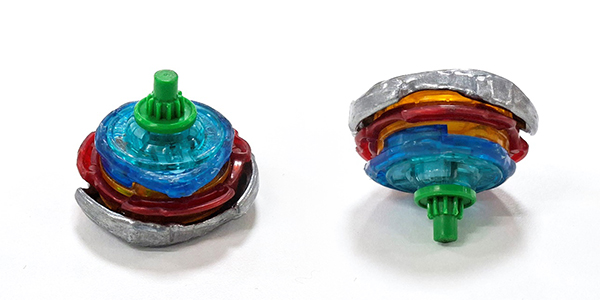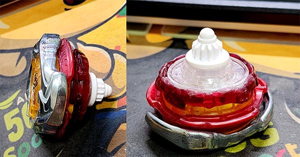 This combo hits hard with maximum destructive force, but it comes at the cost of short spin time and often gives up a point to Stamina types. It’s best used as your opening shot.