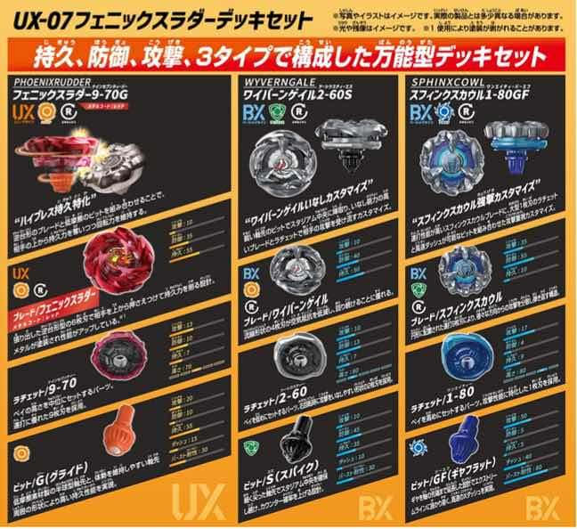โดยสำหรับ เจ้า Phoenix Rudder มาในรหัส UX07 Phoenix Rudder Deck Set หลังจากห่างหายไปนานของชุด Deck Set เขาก็กลับมากับเจ้าตัวใหม่อย่าง Phoenix Rudder จ้า และมี Wyvern Gale และ Sphinx Cowl สีใหม่ด้วย