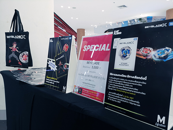 นอกจากการแข่งขันแล้ว ภายในงานยังมีสินค้ามาจำหน่ายอีกมากมาย พร้อมทั้งของใหม่ไม่ว่าจะเป็นเจ้า BX-31 Tyranno Beat, UX-05 Shinobi Shadow และสินค้าอื่นๆในไลน์การผลิต Beyblade X