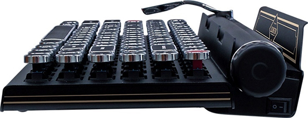 นอกจากดีไซน์เอาใจวัยเก๋าแล้ว ยังมีกิมมิคขำๆซ่อนอยู่ ด้วยฟังก์ชั่นปลับลดเสียงด้วยแป้นหมุนบนตัวคีย์บอร์ด (แป้นพิมพ์ดีดจริงๆจะเอาไว้เลื่อนกระดาษ) และสามารถใช้เลื่อนหน้าจอแทนปุ่ม Page Up / Page Down ได้ และการปัดแคร่พิมพ์ดีด ก็จะเป้นการขึ้นบรรทัดใหม่แทนการกด Enter บนคีย์บอร์ด