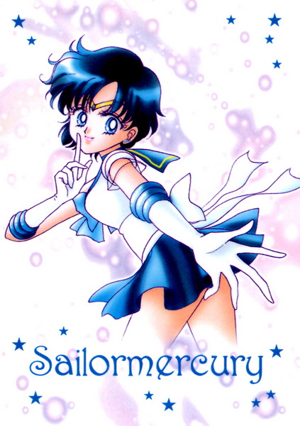 เซเลอร์เมอร์คิวรี่ เป็นอัศวินผู้รอบรู้ ตัวแทนแห่งดาวพุธ ใช้พลัง น้ำ โจมตีศัตรู สีประจำตัวคือ สีฟ้า อุปกรณ์สำคัญของเซเลอร์เมอร์คิวรี่ คือ “คอมพิวเตอร์เครื่องเล็ก” ขนาดประมาณเครื่องคิดเลข และ “แว่นแบบพิเศษ” ที่คอยวิเคราะห์ข้อมูล (ที่ทำหน้าที่คล้ายๆ“สเคาท์เตอร์ ของเบจิต้า”)ที่จะปรากฏออกมาเมื่อสัมผัสต่างหูครับ
