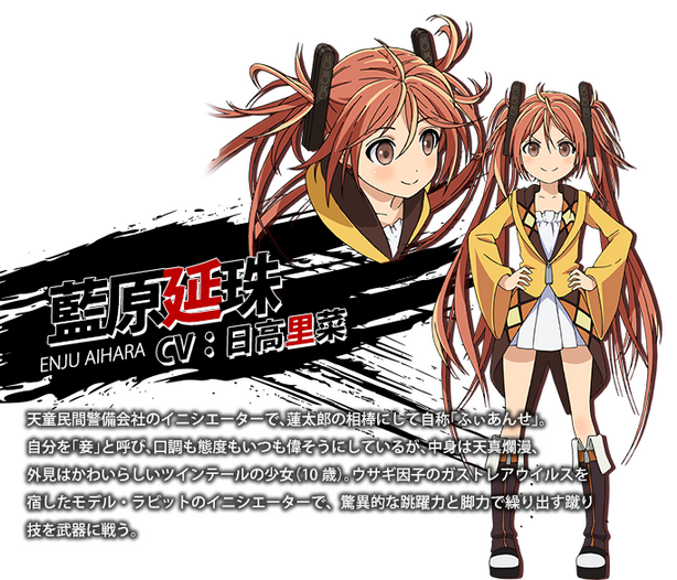 เด็กสาวตัวเล็ก วัย 10 ขวบ เธอเป็นอินนิเทียเตอร์คู่หูของเร็นทาโร่ ใช้การต่อสู้ในรูปแบบของกระต่าย (Model Rabbit Initiator) คนทั่วไปมองเธอว่าเป็น เด็กต้องสาป และยังถูกมองเป็นเครื่องมือในการต่อสู้กับพวกกาสเทรย์ ในครั้งแรกที่ได้มาเจอกับเร็นทาโร่เธอมีความไม่ไว้เนื้อเชื่อใจต่อคนแปลกหน้า แต่เมื่อได้มาเป็นครอบครัวเดียวกันแล้ว หัวใจเธอเปิดรับอีกฝ่ายมากขึ้น จนนิสัยเปลี่ยนไปจากเดิมจนหมดสิ้น กลายเป็นเด็กร่าเริง แก่แดด เจ้าอารมณ์แถมยังอยากเป็นภรรยาของเร็นทาโร่อีกต่างหาก