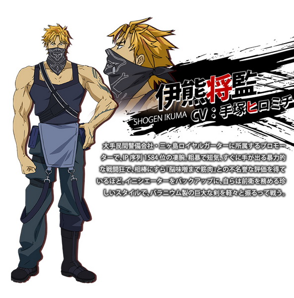 ชายร่างยักษ์ที่ทำงานให้กับบริษัทรักษาความปลอดภัยแห่งเกาะมิกะ (Mika Island Civil Security Corporation) เป็นโปรโมเตอร์ ไอพีแรงค์ลำดับที่ 1,584 มีอินนิเทียเตอร์คือ คาโยะ และมีดาบขนาดใหญ่เป็นอาวุธ สุดท้ายเขาถูกคาเงทาเนะฆ่าตายในระหว่างปฏิบัติภารกิจ
