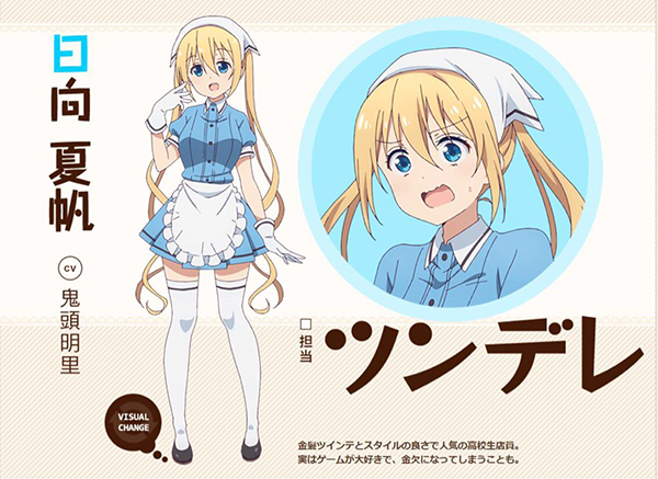 สาวหุ่นดีผมบลอนด์วัย 17 และยังเป็นเกมเมอร์ตัวยง คาแรกเตอร์ประจำตัวคือ “Tsundere” สาวปากร้าย แต่ด้วยความเป็นเกมเมอร์เข้าเส้นจึงทำให้มีปัญหาเวลาลูกค้าคุยกันเรื่องเกม เธอจะรู้สึกสนใจจนไม่มีสมาธิในการทำงาน