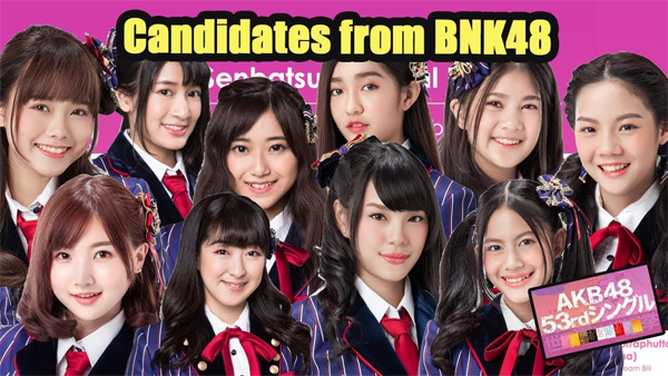 หลังจากลงชื่อสมัครไว้ในช่วงเดือนมีนาคม ก่อนหน้างานคอนเสิร์ทใหญ่ ก็มีการสรุปว่าจะมีเมมเบอร์ที่ลงเลือกตั้งของ AKB48 เพื่อหา 16 ตัวจริง จากเมมเบอร์สังกัด 48 ทั่วโลก โดยสามารถโหวตผ่านซิงเกิ้ลที่ 52 เพื่อไปลงตำแหน่งในซิงเกิ้ลที่ 53 นั่นเอง และของไทยเราก็ลงสมัครเลือกตั้ง 10 คนดังนี้ครับ