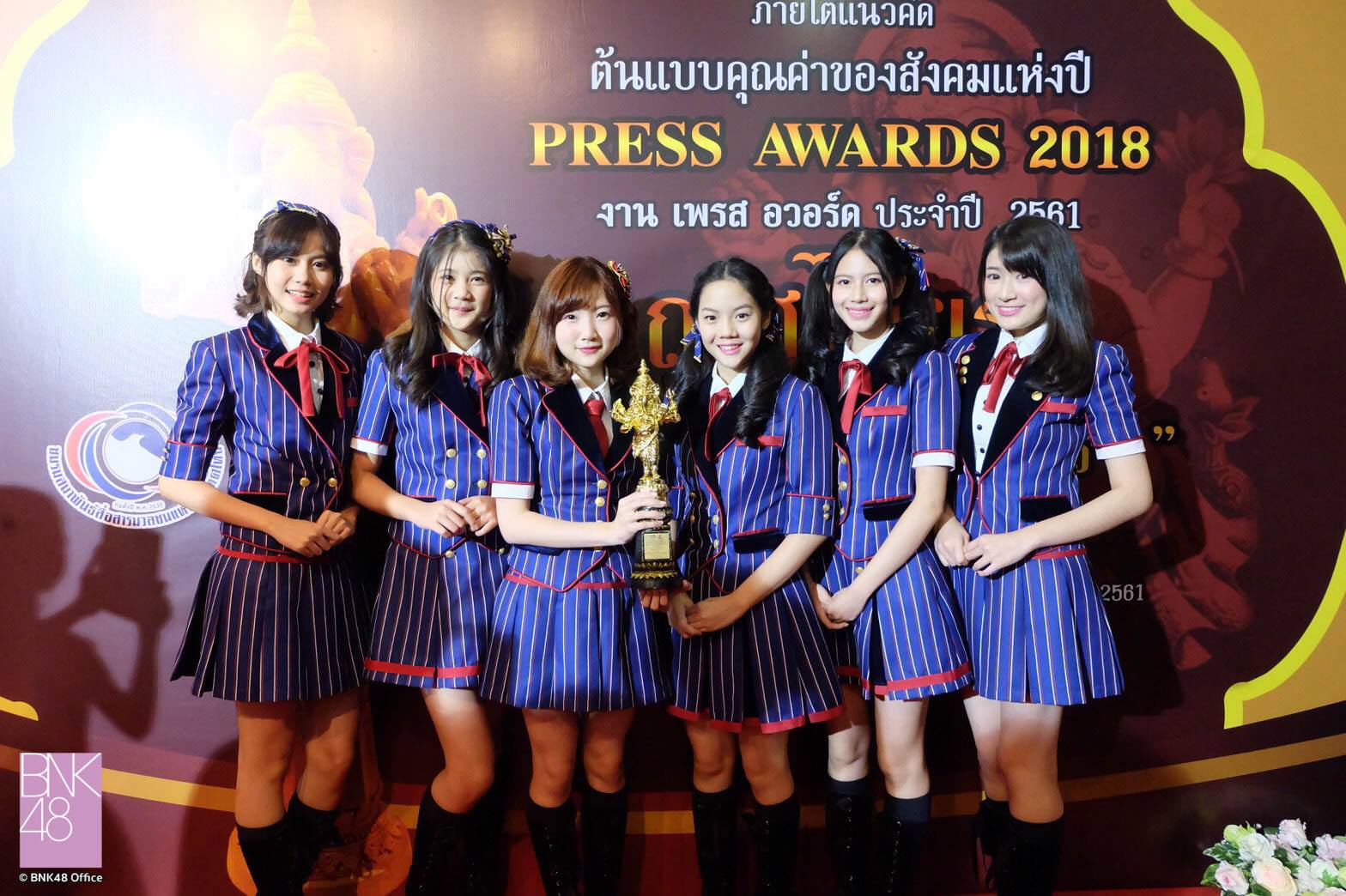 วันที่ 29 เมษายน 2561 BNK48 ได้รับ ” รางวัลสื่อสารมวลชน ” วิทยุ โทรทัศน์ หนังสือพิมพ์ – ศิลปินตัวอย่างดีเด่น จากงาน PRESS AWARD 2018 เณศไอยรา