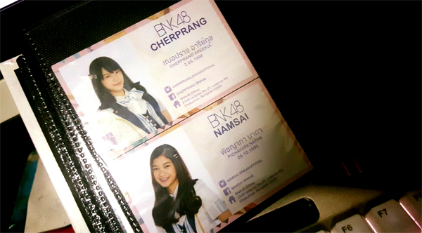 อันนี้เริ่มเข้าสู่โซนของแรร์ไอเทมละ กับของที่จัดว่า เหล่าคามิโอชิบางท่านยอมจ่าย กับ “นามบัตรของเมมเบอร์” วิธีการได้มาก็คือ ในช่วงงานจับมือครั้งแรก เมื่อผู้เข้าร่วมใกล้ถึงคิวจับมือกับน้องๆ จะมีทีมงานให้เล่นเกมหน้าบูธ ถ้าโชคดีก้จะได้นามบัตรจากมือเมมเบอร์โดยตรงครับ ตอนนี้นามบัตรเปิดประมูลกันที่ 3-4พันบาท ของเฌอปรางไม่ต้องสืบครับ 6-7พันเข้าไปแล้ว