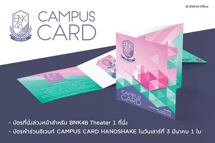 อีกสิ่งที่ตอนนี้เหล่าแฟนคลับทั้งหลายอยากให้เกิดขึ้นเร็วๆนอกจากการเลือกตั้ง (ของ BNK นะไม่ใช่ของคุณลุงท่านหนึ่ง) ก็คือ เธียร์เตอร์ ที่เป้นเวทีการแสดงของน้องๆโดยเฉพาะ ซึ่งการจะได้ไปดูเธียร์เตอร์ก็ต้องมีตั๋วเข้าชม และบัตรแคมปัส ก็คือบัตรเข้าชมเธียร์เตอร์รุ่นแรกๆเลยก็ว่าได้