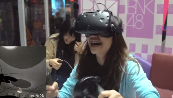 อันนี้เป็นเกมจากเครื่อง VR ที่น้องน้ำใส BNK48 ได้เล่นในรายการ Freetine จริงๆเกมไม่มีอะไรนอกจากการยิงแมงสาบเก็บแต้ม แต่ด้วยรีแอคชั่นของคนกลัวแมงสาบของน้องจนถีบเครื่อง HTC Vive ราคา4หมื่นได้โดยไม่ใยดี ก็ทำให้ผู้ชมสนุกได้ซะงั้น ชมคลิปได้ในลิ้งก์