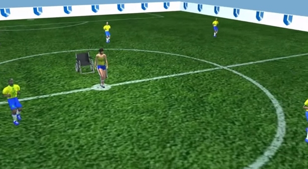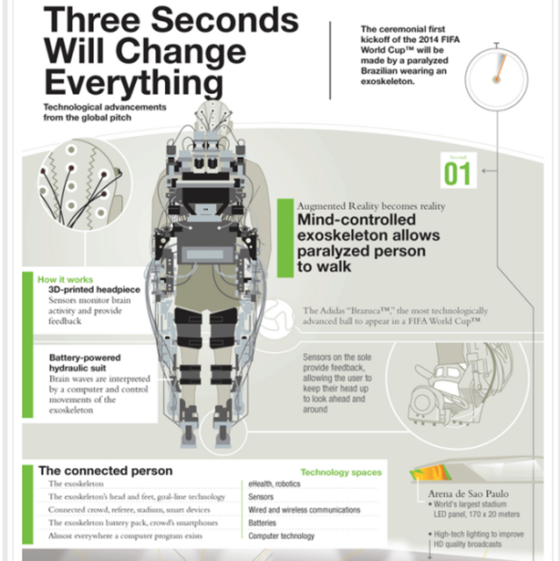 โดยชุดหุ่นยนต์นี้มีชื่อเรียกว่า BRA-Santos Dumont ผลิตขึ้นเพื่อให้คนที่เป็นอัมพาตท่อนล่างได้ใส่ชุดนี้ ซึ่งความพิเศษของมันอยู่ที่ผู้สวมใส่สามารถควบคุมการทำงานได้ด้วยสมอง นอกจากจะทำให้เล่นฟุตบอลได้แล้วยังสามารถส่งสัญญาณความรู้สึกในการเคลื่อนไหว และการสัมผัสกลับมายังผู้สวมใส่ผ่านทางผิวเทียมที่สวมไว้ที่แขนได้อีกด้วย