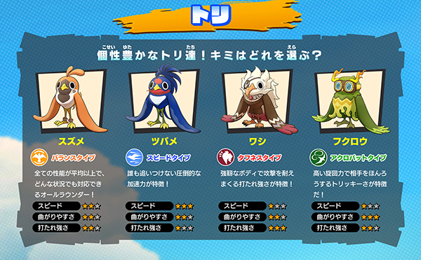 โดยโหมดเกมที่ให้คุณได้ต่อสู้กับเพื่อน ทั้งแบบออนไลน์และออฟไลน์ 4 คนแบ่งจอ ก็สามารถทำได้ และตัวเกมจะมีอีเว้นท์ให้ทำมากมาย รวมไปถึงการจัดอันดับแรงค์ TOP5 ในโหมด “ต่อสู้กับทุกคน (ออนไลน์)” คุณสามารถวัดพลัง วัดอันดับออนไลน์กับนกจากทั่วประเทศญี่ปุ่นได้(เกมอิงจากเซิฟ JP) อันดับจะเปลี่ยนไปอย่างรวดเร็วขึ้นอยู่กับผลการต่อสู้!