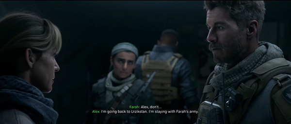 ในขณะเดียวกัน อเล็กซ์ ได้รับข้อมูลให้ไปพบกับ Farah Karim (ฟารา คาริม) ผู้นำฝ่ายกบฏของ Urzikstan โดยมีเงื่อนไขว่าเขาจะได้รับเบาะแสของก๊าซพิษที่อยู่ในมือรัสเซีย แต่ก็ต้องอยู่ช่วย กองกำลังต่อต้านเข้าสู้รบกับกองกำลังของรัสเซียที่ยึดครอง Urzikstan อยู่