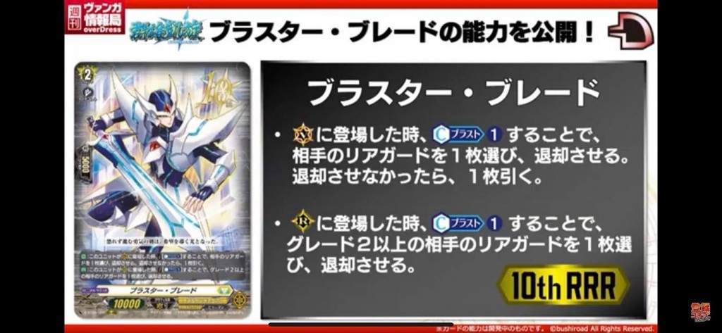 1 บ๊อก การันตี 1 ใบ โดยตัวแรกที่เปิดเผยออกมา ก็ทำให้คอมมูฯคนเล่นแวนการ์ดในไทย และต่างประเทศกลับมาคึกคัก เพราะ “นายสมชาย” – บลาสเตอร์ เบลด a.k.a. ลูกรักบูชิโร้ด กลับมาในฟอร์แมตนี้แล้ว!! บอกเลย ใครเก็บสาย10ปี มีจุกแน่ๆ…
