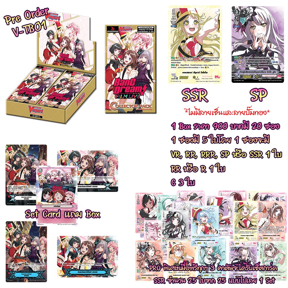 การ์ดไฟท์แวนการ์ด ชุดพิเศษ งานโคลาโบกับทางเกมดนตรีจับจังหวะชื่อดังของญี่ปุ่นอย่าง BANG DREAM ก็ได้มีการออกเวอร์ชั่นภาษาไทยเป็นที่เรียบร้อยแล้ว โดยจะมาในชื่อชุด V Title Booster 01 (V-TB01) : BanG Dream! FILM LIVE ที่ สามารถนำไปเล่นร่วมกับ “แคลนอนิเมชั่น” (โคนัน)ได้ โดยทางผู้ผลิตอย่างKidz and Kitz ได้เปิดเผยว่า สินค้าจะวางจำหน่ายประมาณเดือนมกราคมปีหน้า และมาพร้อมโปรโมชั่นสุดพิเศษสำหรับผู้พรีออเดอร์ทุก 3 ลัง เท่านั้น จะได้รับการ์ดระดับ SSR 25 แบบ 25 แบบไป 1 เซ็ตอีกด้วย
