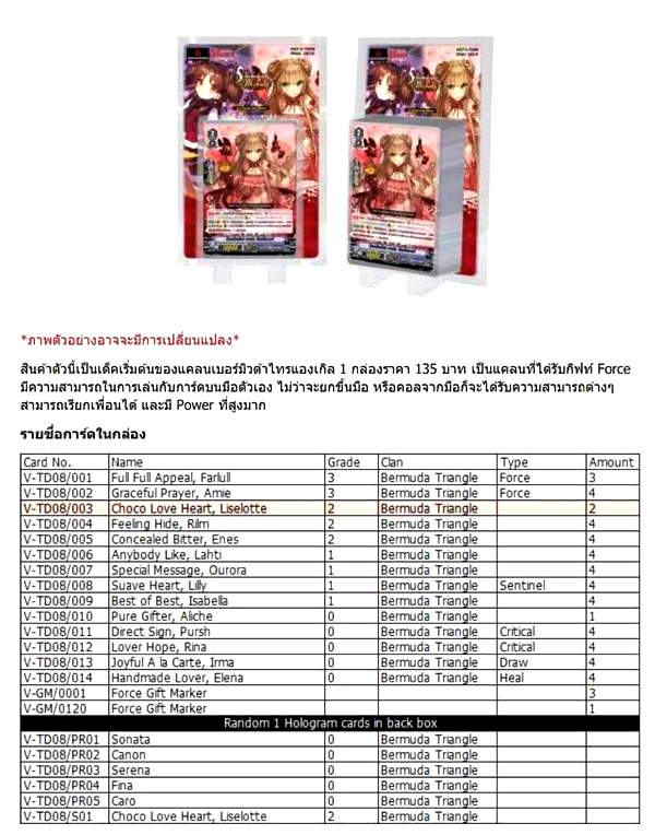 การ์ดไฟท์แวนการ์ด “Schokolade Melody เด็คเริ่มต้น ชุดที่ 8″ วางจำหน่ายในรูปแบบภาษาญี่ปุ่น กับ ภาษาอังกฤษแล้ว
