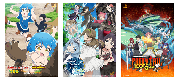 บันทึกการเดินทางแสนเอื่อยในต่างโลก (เลี้ยงลูกพร้อมกับเป็นนักผจญภัย)เป็นเรื่องราวของตัวเองทาคุมิ คายาโนะที่ได้สูญเสียชีวิตเพราะความผิดพลาดพระเจ้า จึงได้มาเกิดใหม่อีกโลก และได้หลากหลายความสามารถ ในป่าที่เต็มไปด้วยเหล่าสัตว์ประหลาด เขาได้พบกับเด็กผู้หญิงและผู้ชายเป็นฝาแฝดกันปรากฏตัวอยู่ในนั้น จึงได้ลงเอยที่เริ่มต้นเลี้ยงดูเด็ก ๆ และใช้ชีวิตผจญภัยอย่างเรื่อยเปื่อยตำนานวีรบุรุษนักสำรวจที่เริ่มจากตัวประกอบ ไคโตะ ทาคากิบุคคลผู้มีเสตตัส ที่ต่ำทำให้ประทังชีพได้เพียงการฆ่าสไลม์ในดันเจี้ยนเท่านั้น จนกระทั่งวันหนึ่งเขาได้ใช้พลังทั้งหมดของตัวเองสังหารสไลม์สีทองลงได้ แล้วก็ได้รับการ์ดผู้รับใช้ระดับสุดยอดหายาก! หลังจากที่ครุ่นคิดแล้วคิดอีก ก็เลยตัดสินใจที่จะอันเชิญขึ้นมา ทำให้มีวัลคิลี่ปรากฏตัวต่อหน้าเขา…ศึกจอมเวทอภินิหาร ภารกิจ 100 ปีเหล่าสมาชิกที่แข็งแกร่งที่สุดในแฟรี่เทลกำลังจะเดินทางไปสู่ทวีปกิลติน่า อันเป็นกิลด์ของจอมเวทย์ที่เก่าแก่ที่สุด มาเกียดราก้อน เพื่อที่จะท้าทายเควสที่ไม่เคยมีใครทำสำเร็จมาก่อน นัตสึและผองพวก รู้สึกตื่นเต้นกับการผจญภัยครั้งใหม่นี้!