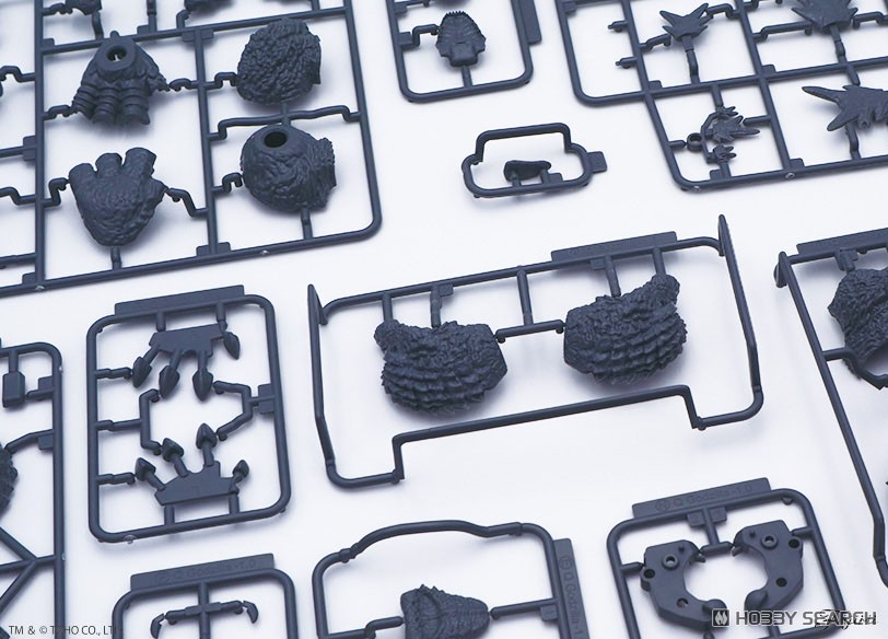 หัวของโมเดลนี้ถูกออกแบบให้แยกเป็นสองฝั่งซ้าย-ขวา ดวงตาขึ้นรูปแยกเป็นชิ้นสีขาว ส่วนภายในปากมีการแกะสลักฟันแหลมคมอย่างประณีต ผิวหนังบริเวณลำตัวด้านหน้าและด้านหลังแยกกันเพื่อความง่ายในการประกอบ ขณะที่รายละเอียดพื้นผิวถูกจำลองให้ใกล้เคียงกับของจริงมากที่สุด แม้จะอยู่ในรูปลักษณ์ของตัวการ์ตูนก็ตาม