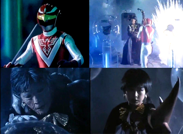 แต่ทว่าระหว่างที่ทั้ง3คนกำลังขึ้นไปที่ยานของพวกโวลท์ “อามามิยะ ยูสึเกะ ” , “โอฮาระ โจ” , “มิซากิ เมกุมิ” , “ยาโนะ ทาคุจิ” และ “ไอคาวะ มาริ” กลุ่มนักเรียนชั้นปลายแถวของสถาบัน ที่กำลังทดลองชุดเพาเวอร์สูทมาพบเห็นเข้า จึงได้เข้าขัดขวาง เพราะพวกของซึงิกาตะ ก็เป็นเพื่อนของยูสึเกะ แต่ท้ายที่สุด ซึงิกาตะยังลงมือฆ่า มาริ และ ทาคุจิ แล้วหายสาปสูญไปกับยานต่างมิติ เหลือเพียงความเจ็บแค้นต่อซึงิกาตะ และ ความเศร้า ที่สูญเสียเพื่อนรักอย่างมาริ และทาคุจิไป