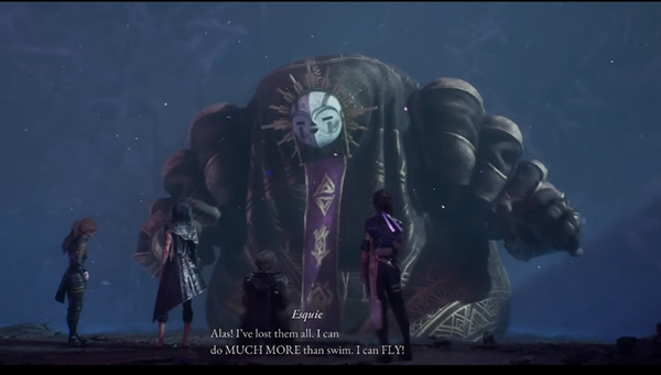 ระหว่างการหาทางข้ามทะเลอีกผืนเพื่อไปยังที่พำนักของเทพี พวกเขาขอความช่วยเหลือจาก เอสคีเยร์ สิ่งมีชีวิตขนาดใหญ่ในตำนาน ที่ออกเดินทางร่วมกับคณะสำรวจ ที่พาพวกเขาข้ามเกาะได้ทั้งทางน้ำและอากาศ