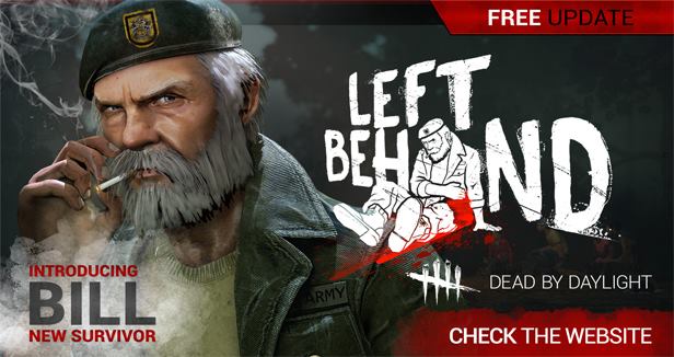 ฟรีอัพเดท (Left-Behind) ผู้รอดชีวิตคนใหม่ ของเกม Dead by Daylight แต่เป็นตัวละครเก่าในเกม Left for Dead นั้นก็คือ ทหารที่ผ่านศึกมาอย่างโชกโชนอย่าง Bill Overbeck นั้นเอง โดยในการอัพเดทครั้งถึงแม้จะไม่มีฆาตกรและด่านใหม่ๆเข้ามา แต่ก็ยังมีทรงผม และเสื้อผ้าของ 4 ตัวละครหลัก ให้ได้เปลี่ยนลุคกันอย่างฟรีๆอีกด้วย ซึ่งก็เป็นธีมจาก Left for Dead นั้นเอง