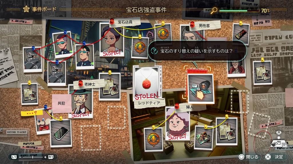 ด้วยความช่วยเหลือของ “DECASIM” ซึ่งสามารถจำลองเหตุการณ์ใดๆ ก็ตามที่เกิดขึ้นในเมือง คุณสามารถค้นหาเบาะแสจากโลกไซเบอร์ เพื่อไขคดีในโลกแห่งความเป็นจริง คลิปหลักฐาน ภาพถ่าย วัตถุพยานที่เก็บ จะนำไปรวบรวมที่ “กระดานคดี” และค้นหาวิธีแก้ปัญหาในการถอดรหัสคดี
