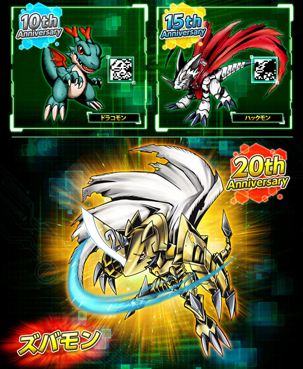 ในโอกาสพิเศษครบรอบแต่ละครั้ง จะมีดิจิม่อนตัวพิเศษมาอยู่ในรุ่นนั้นเสมอ อย่างตอน ครบรอบ 10ปี เราจะมี Dracomon(ดราโกม่อน) และครบรอบ 15ปี ก็จะได้ Hackmon (แฮคม่อน) มาประจำดิจิไวซ์รุ่นพิเศษ ซึ่งการครบรอบ 20 ปีนี้ ก็ต้องมีดิจิม่อนใหม่เช่นกัน คราวนี้เป็นดิจิม่อน Legend Arms สีทองที่ชื่อว่า Zubamon (ซึบาม่อน)