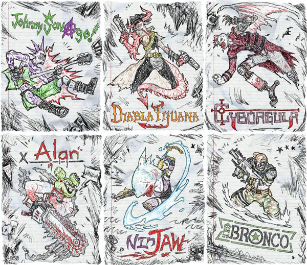 ตัวละครหลัก 6ตัวสุดเฟี้ยว และสกิลก่อกวนสุดแพรวพราว จากปลายปากกาของ David Jaffe และทีมงาน ซึ่งตลอดเกม จะใช้งานภาพแบบเส้นปากกาลูกลื่นในการสร้าง Object โครงสร้างต่างๆในฉาก