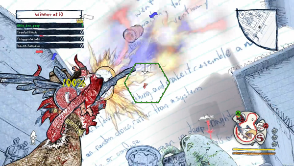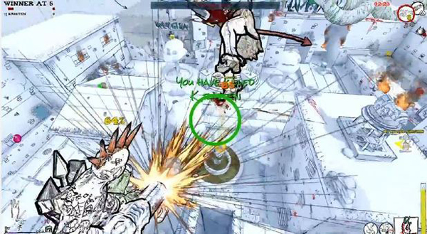 แต่นี่คือเกมเดินหน้ายิงที่มีไอเดียการนำเสนอสุดแปลก เมื่อเหล่า “ภาพเขียนเล่นในสมุดจดของเหล่าวัยรุ่น” กลายเป็นตัวละครในเกมสงครามแบ่งฝั่งไล่ยิงอย่างบ้าคลั่ง กับเกมที่มีชื่อว่า
