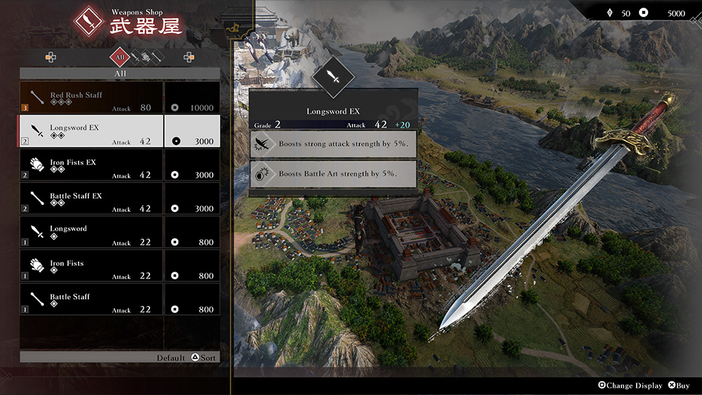 ผู้เล่นจะสามารถเลือกอาวุธได้ 4 ประเภท ได้แก่ ดาบ / ง้าว / ดาบง้าวยาว / กงจักร รวมถึงมีตัวเลือกในการปรับแต่งอุปกรณ์เสริม เพื่อเข้าปะทะกับ ลิโป้ ในเวอร์ชั่นที่แตกต่างจากเดโมที่งาน Tokyo Game Show อีกทั้งยังสามารถเลือกระดับความยากได้