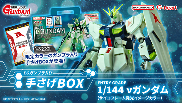 EG 1/144 Nu Gundam Luminescent Psycho Frame Image Color‘ ผลิตภายใต้ความร่วมมือของบันได และ Heart Co., Ltd โดยจะเน้นไปที่การวางจำหน่ายที่เคาน์เตอร์ขนม มินิมาร์ท และร้านสะดวกซื้อที่ร่วมรายการ ทั่วประเทศญี่ปุ่น จำกัดการซื้อ 1 ออร์เดอร์ : 5 กล่อง