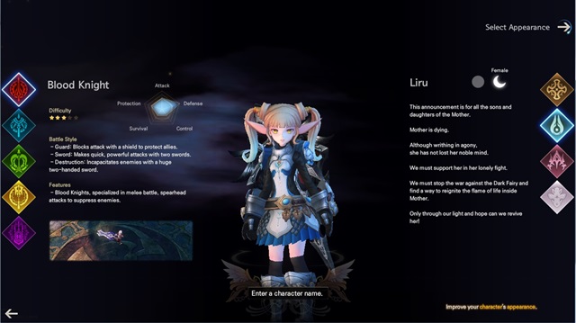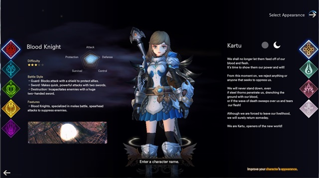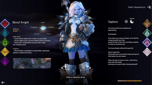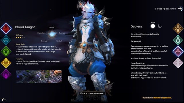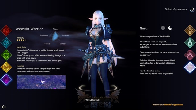 ผู้เล่นจำเป็นต้องเลือกตัวละครให้กับตัวเองจากเผ่าพันธุ์ทั้ง 4 ที่มีในเกม ผู้เล่นสามารถเลือกเป็นเผ่าใดเผ่าหนึ่งก็ได้ โดยไม่มีผลต่อสเตตัสใดๆ หลังจากที่เลือกเล่นแล้ว (เว้นเพียงเผ่า Naru เท่านั้น) ซึ่งจะแบ่งออกได้ดังนี้…