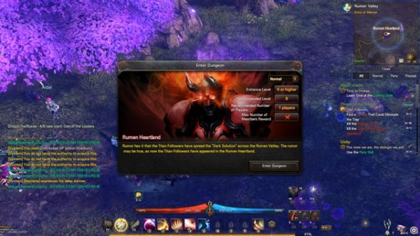 นอกเหนือจากเควสภารกิจทั่วๆ ไปแล้ว ยังมีเควสดันเจี้ยน ที่ต้องอาศัยการร่วมมือจากผู้เล่นคนอื่นแบบปาร์ตี้ ในการเคลียร์ภารกิจอีกด้วย ความง่าย – ยากก็ขึ้นอยู่กับระดับของภารกิจที่เลือกทำ