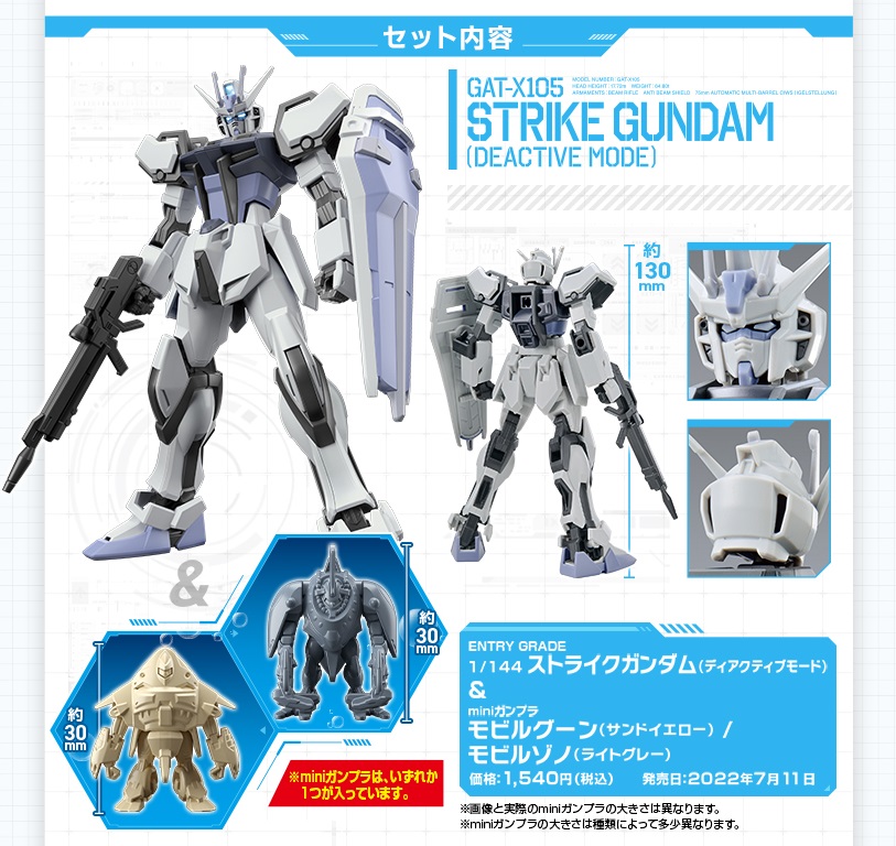 ENTRY GRADE 1/144 STRIKE GUDAM + MINI GUNPLA MOBILE GOOHN+MOBILE ZNO