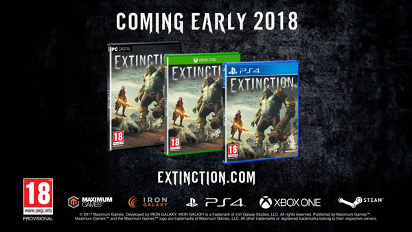 Extinction เป็นเกมแอคชั่นมุมมองบุคคลที่ 3 โดยทีมงาน Iron Galaxy มีกำหนดลงให้ระบบ PS4, Xbox One และ PC