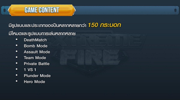 หลังจากเปิดตัวไปในงาน Thailand Game Show BIG Festival 2015 ที่ศูนย์การค้าสยามพารากอน กับเกมส์ FPS สายพันธุ์ใหม่Extreme Fire ที่ตอบสนองผู้เล่นวัยเกรียน และผู้เล่นที่ไม่อยากเพิ่มความเครียดจากการเล่นเกมส์ได้เป็นอย่างดี เพราะนี่คือเกมส์ FPS ที่เน้นลุย ยิง ตายไวก็เกิดไว เหมาะอย่างยิ่งสำหรับขาลุย