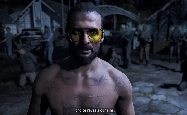 สิ่งหนึ่งที่ชัดเจนขึ้นของเกม Farcry5 ก็คือรูปแบบการนำเสนอเนื้อเรื่องที่พยายามเอาของภาค 4 มาใส่ ทั้งระบบตัวเลือกถามตอบ การรับส่งเควสท์ที่ส่งผลกับเนื้อเรื่อง (นิดๆหน่อยๆ) และความบันเทิงของการแลกกระสุน กับเนื้อเรื่องที่มืดมนไร้หนทาง น่ากลัว และบ้าคลั่งสุดๆ ใครจะไปคิดว่าศาสนาทำให้คนกลายเป็นบ้าได้ขนาดนี้…(ใครอ่านสปอยล์มาแล้วจะรู้เลยว่ามันดาร์คขนาดไหน) ถ้านับกันตามจริงๆ เฉพาะคัตซีน ถือว่าเกมเล่าเรื่องได้รวดเร็วมากๆ (เพราะเกมมันเสียเวลากับเกมเพลย์แล้ว) เนื้อเรื่องจึงถูกรวบให้เร็ว กระชับ เข้าใจง่ายขึ้น ซึ่งมันผิดไปจาก Farcry ภาคก่อน ที่เล่าเรื่องอ้อมโลก ยืดยาด และชวนให้ลบเกมทิ้ง ถ้าไม่ติดว่าเกมเพลย์มันเจ๋งซะก่อน…