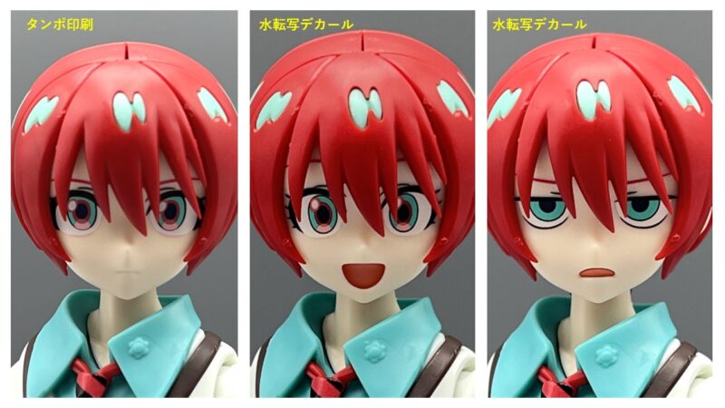 Figure-rise Standard ชุดนี้มาพร้อมกับใบหน้าที่แสดงอารมณ์ได้หลากหลาย โดยมีใบหน้าที่พิมพ์ลวดลายสำเร็จมาให้ 1 แบบ และใบหน้าที่สามารถใช้สติกเกอร์น้ำ (water-transfer decals) แปะได้อีก 2 แบบ โดยสีผมด้านในถูกสร้างขึ้นมาโดยการแบ่งส่วนชิ้นส่วนเพื่อให้ดูเหมือนในอนิเมะ