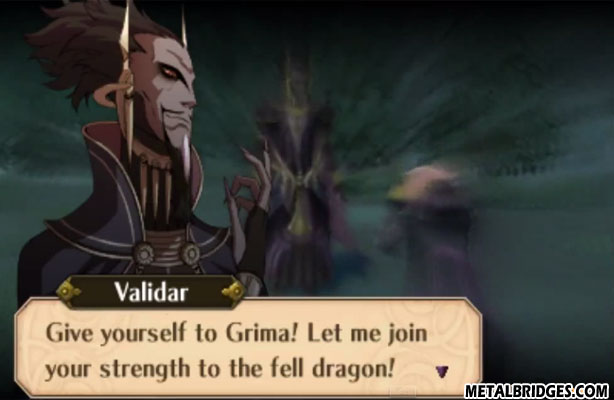 ในระหว่างที่ Chrome กำลังวางแผนหารือแผนป้องกันมังกร Grima อยู่นั้น Validarได้ปรกกฎตัวขึ้นและทำร้าย Chrome และควบคุมตัวเราให้ไปชิง อัญมณีวิเศษทั้ง 5 และ Fire Emblem มา เมื่อ Validar ชิงของทั้งหมดได้แล้วก็หลบหนีไป