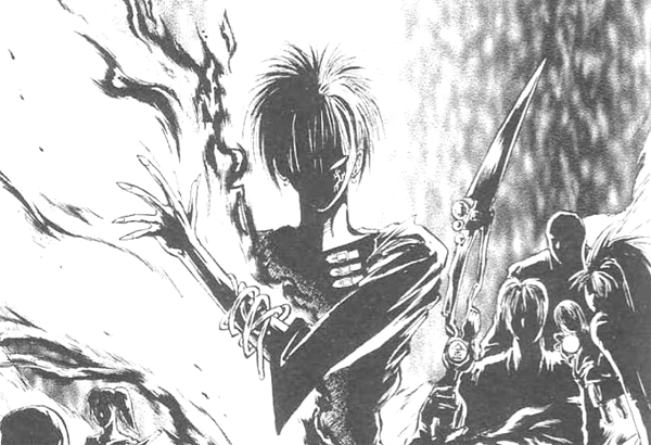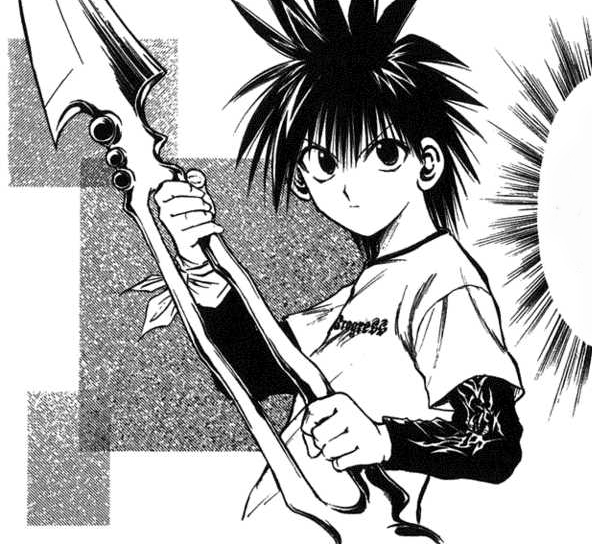 เด็กหนุ่มผมยาวหน้าสวย ในอดีตเขาได้สูญเสียพี่สาวที่ถูกกลุ่มคนลึกลับ (กลุ่มอุรุฮะของคุเร) ฆ่าตายไปต่อหน้าต่อตา คราวแรกตัวเขาก็ได้ถูกคาเงโฮชิชักพาให้เข้าไปสู่สังเวียนการต่อสู้ด้วยเช่นเดียวกัน ตัวเขาได้ต่อสู้กับเรกกะเพราะต้องการที่จะแยกยานางิที่มีใบหน้าที่เหมือนกับพี่สาวของตัวเองที่ตายไปให้ห่างจากการต่อสู้ ซึ่งจนกระทั่งได้เขามาเป็นส่วนหนึ่งของทีมเงาอัคคีเข้าร่วมในงานประลองโลกมืด เพื่อออกตามหา “คนที่ฆ่าพี่สาวของตนเอง” จนได้ล่วงรู้ว่าผู้ที่อยู่เบื้องหลังนั้นเป็น “เมงูริ เคียวสะ” อาจารย์ของตัวเขาเอง ตัวเขาได้ร่วมในการต่อสู้กับพวกเรกกะเพื่อยับยั้งโมริ โครันที่ได้ปลุกสวรรค์มิคสัญญีที่กลายเป็นเทนโดจิโกคุในศึกสุดท้าย